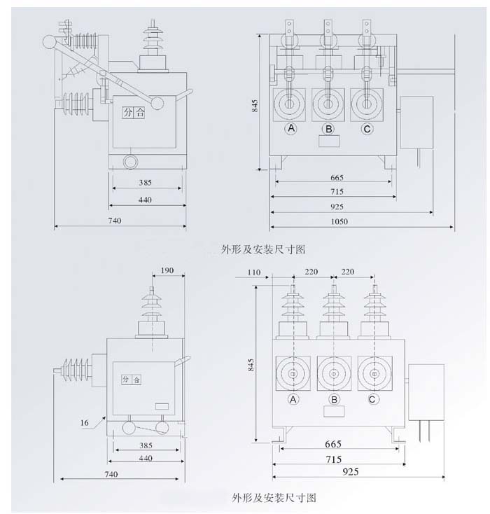 4.開關本體可內置PT,PT各相均有保險,安裝方便,運行安全可靠。
